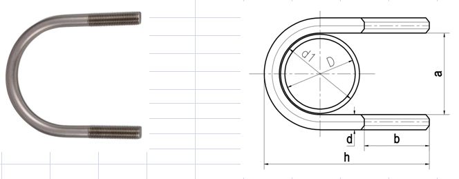 Hoặc Ubolt được chế tạo từ bằng thép hợp kim như: CT3, SS400, Q325, C35, C45… hoặc theo cấp bền 3.6; 4.6; 5.6; 6.6; 8.8. Thông thường bề mặt bu lông chữ U (Ubolt) nếu được sản xuất bằng thép thì thường được mạ bằng phương pháp điện phân, khi bu lông chữ U (Ubolt) phải làm việc trong môi trường khắc nghiệt hơn người ta còn phải mạ bu lông chữ U (Ubout) bằng phương pháp mạ kẽm nhúng nóng hoặc nhuộm đen.
