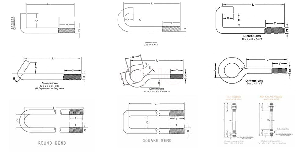 Tùy vào thiết kế mà có những hình dạng bu lông neo khác nhau