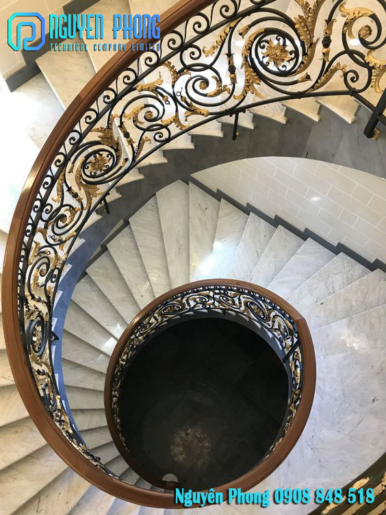 Cầu thang sắt uốn mỹ thuật cho biệt thự, villa, nhà phos
