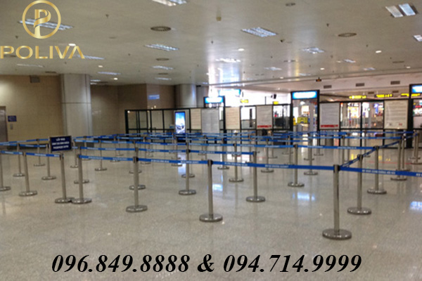 Cột chắn inox dùng trong sân bay được đặt ở nhiều địa điểm khác nhau trong khu vực sảnh, khu vực chờ khách và làm thủ tục bay. Trụ barie inox sân bay thường dùng dạng dây kéo, khi không sử dụng có thể thu gọn dây và bảo quản dễ dàng.