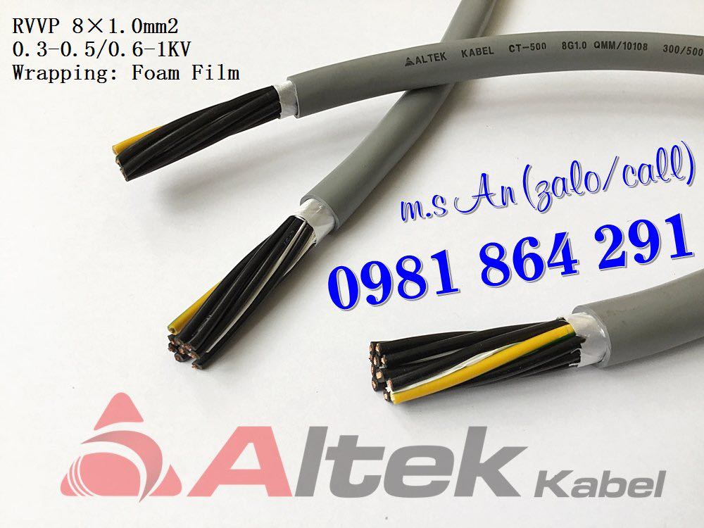 Cáp điều khiển 8 lõi: 8x0.5, 8x0.75, 8x1.0, 8x1.5mm2 0.6-1kV