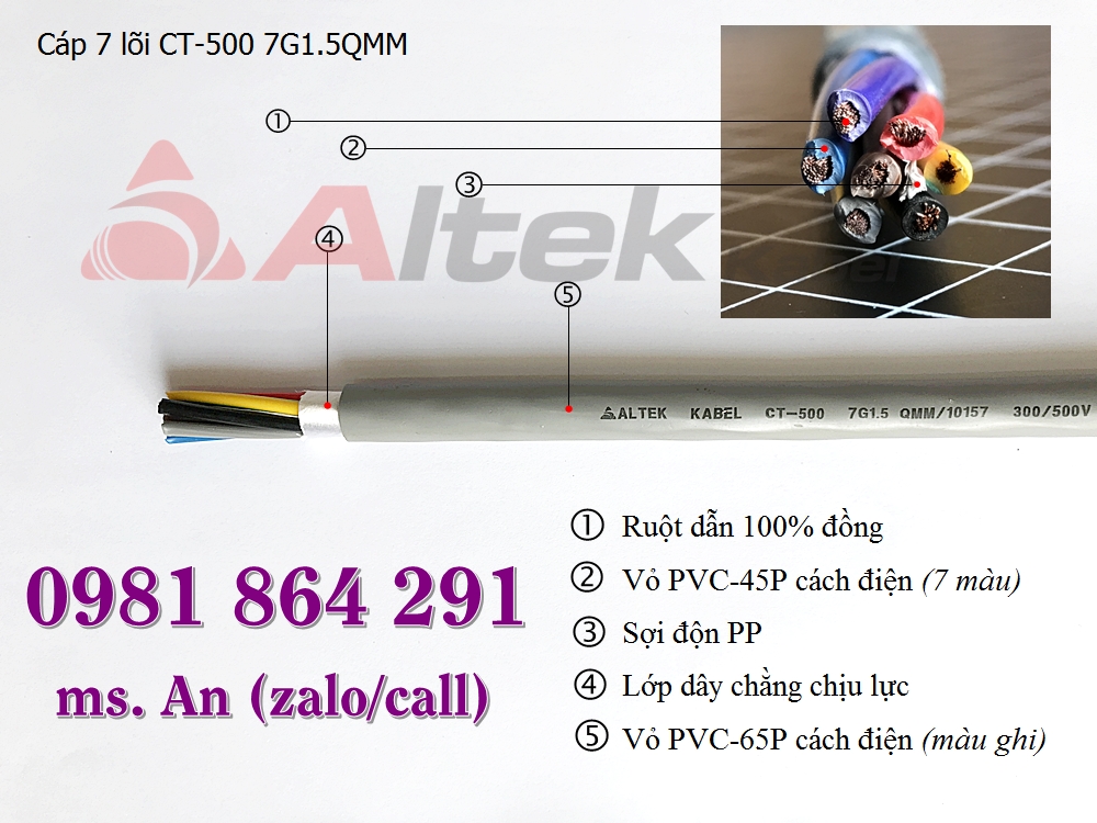 Cáp điều khiển 7 lõi 7x0.5, 7x0.75, 7x1.0, 7x1.5 giá rẻ