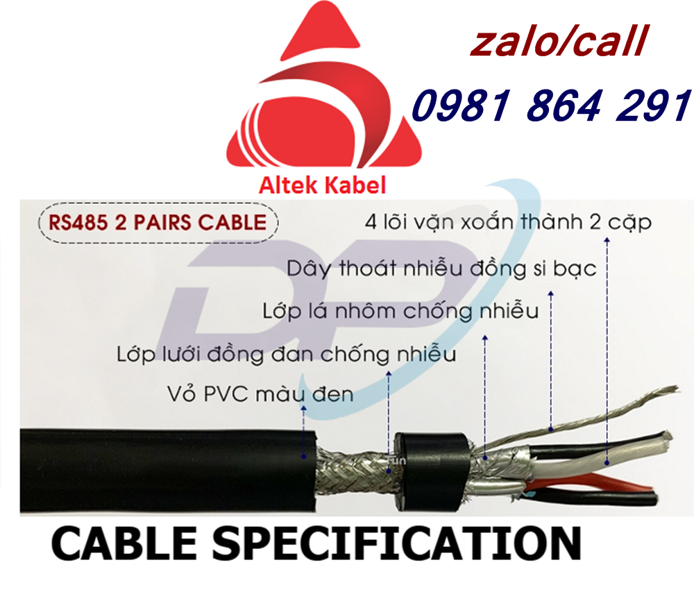 Cáp tín hiệu RS485 24AWG, 22AWG, 18AWG chống nhiễu