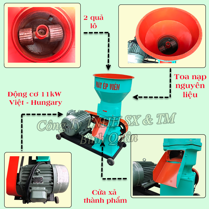 Công ty TNHH sản xuất và thương mại Bình Quân chuyên chế tạo và sản xuất các dòng máy nông nghiệp, lâm nghiệp, chế biến lâm sản, nông sản như: máy nghiền, máy rang, máy sấy, máy ép dầu, máy ép cám viên, máy băm gỗ đa năng, máy băm cỏ, máy băm ván rác.