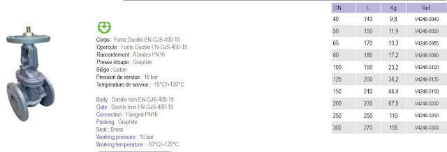 Nắp : Gang dẻo GGG50Kết nối : Mặt bích PN 10 | PN 16Nêm : EPDM/NBR phủ gang dẻo